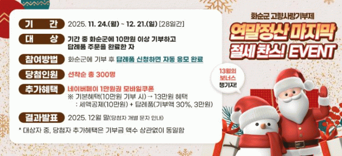 À̹ø À̺¥Æ®´Â ¿¬¸»Á¤»ê ½ÃÁðÀ» ´ëºñÇØ °íÇâ»ç¶û±âºÎÁ¦ÀÇ ¼¼¾×°øÁ¦ ÇýÅÃÀ» Àû±ØÀûÀ¸·Î È«º¸Çϰí, ±âºÎ°¡ ÁýÁߵǴ ¿¬¸» ºÐÀ§±â¸¦ Ȱ¿ëÇØ °íÇâ»ç¶û±âºÎ Âü¿©¸¦ ÇÑÃþ È®´ëÇϱâ À§ÇØ ¸¶·ÃµÆ´Ù.