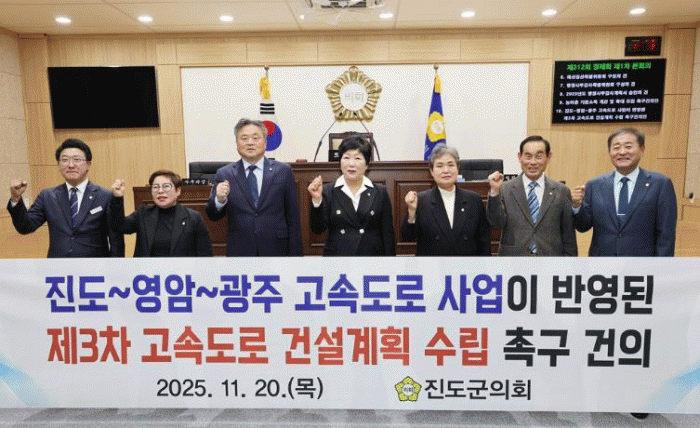 ¹Ú±Ý·Ê Áøµµ±ºÀÇȸ ÀÇÀåÀº ¡°Áøµµ, ¿µ¾Ï, ±¤ÁÖ °í¼Óµµ·Î °Ç¼³Àº Áö¿ªÀÇ ¿À·£ ¿°¿øÀÌÀÚ ¹Ì·¡»ê¾÷ °æÀï·ÂÀ» µÞ¹ÞħÇÒ ±¹°¡Àû ÇÙ½É ½Ã¼³ÀÌ´Ù¡±¶ó¸ç, ¡°Á¤ºÎ°¡ Áøµµ, ¿µ¾Ï, ±¤ÁÖ °í¼Óµµ·Î °Ç¼³À» Á¦3Â÷ °í¼Óµµ·Î °Ç¼³°èȹ¿¡ ¹Ýµå½Ã ¹Ý¿µÇØ ÁÖ±æ ¹Ù¶õ´Ù¡±¶ó°í ÀüÇß´Ù.