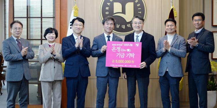 ¹Ú»óö È£³²´ëÇб³ ÃÑÀåÀº ¡°ÇлýµéÀ» À§ÇØ ¼ÒÁßÇÑ ÀåÇбÝÀ» ±âÅ¹ÇØ ÁֽŠKT&G Àü³²Á¦ÁÖº»ºÎ ÀÓÁ÷¿øµé²² ±íÀÌ °¨»çµå¸°´Ù¡±¶ó¸ç ¡°À̹ø ÀåÇбÝÀÌ ÇлýµéÀÇ ²ÞÀ» ½ÇÇöÇϰí, Çõ½ÅÇü ÀÎÀç·Î ¼ºÀåÇÏ´Â µ¥ Å« ÈûÀÌ µÉ °Í¡±À̶ó°í ¹àÇû´Ù.