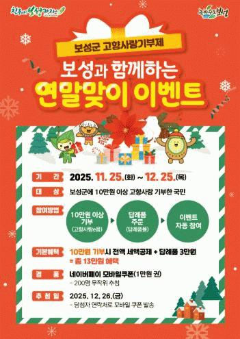 À̺¥Æ® Âü¿© ¹æ¹ýÀº °íÇâ»ç¶ûeÀ½ ´©¸®Áý¿¡¼ º¸¼º±º¿¡ 10¸¸ ¿ø ÀÌ»ó ±âºÎÇÑ µÚ ´ä·ÊǰÀ» ÁÖ¹®Çϸé ÀÚµ¿À¸·Î À̺¥Æ®¿¡ ÀÀ¸ðµÈ´Ù.
