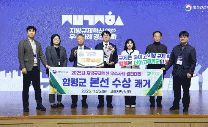 ÇÔÆò±ºÀº 26ÀÏ ¡®³ó°ø´ÜÁö °ÇÆóÀ² ±ÔÁ¦ °³Çõ¡¯À¸·Î ÇàÁ¤¾ÈÀüºÎ ÁÖ°ü ¡®2025³â Áö¹æ±ÔÁ¦Çõ½Å ¿ì¼ö»ç·Ê °æÁø´ëȸ¡¯¿¡¼ ÃÖ¿ì¼ö»óÀ» ¼ö»óÇß´Ù°í ¹àÇû´Ù. °æÁø´ëȸ´Â Áö³ 25ÀÏ Á¤ºÎ¼¼Á¾ÄÁº¥¼Ç¼¾ÅÍ ±¹Á¦È¸ÀÇÀå¿¡¼ °³ÃֵƴÙ.
