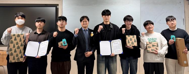 ´ë»óÀº ½Ç½Ã°£ ¾ó±¼ Ç¥Á¤¡¤À½¼ºÀ» ±â¹ÝÀ¸·Î »ó´ãÇü ÀÎÅÍ·¢¼Ç ±¸Çö ±â¼úÀÌ ³ôÀº Æò°¡¸¦ ¹ÞÀº ¡®Ç¥Á¤ ÀÎ½Ä ¹× GAI °¨Á¤ ºÐ¼®À» °áÇÕÇÑ IoT Á¦¾î ½Ã½ºÅÛ¡¯À» ±¸ÇöÇÑ ±è¹Î¿ø ÇлýÀÌ ¼ö»óÇß´Ù. 2µî»óÀº ¹Ú¹Î¼ö¡¤±èÈÖ°â Çлý, 3µî»óÀº ¹®½ÂÁØ¡¤¼Û¿ìÁø Çлý, 4µî»óÀº Ãֹμ®¡¤Á¶¿¹ÁØ Çлý¿¡°Ô °¢°¢ µ¹¾Æ°¬´Ù. ƯÈ÷ ±èÁöÈÆ¡¤¹ÚÁؼ ÇлýÀº ±¹È¸ÀÇ¿ø Çо÷ ¿ì¼ö»óÀ» ÇÔ²² ¼ö»óÇØ ´õ¿í Àǹ̸¦ ´õÇß´Ù.