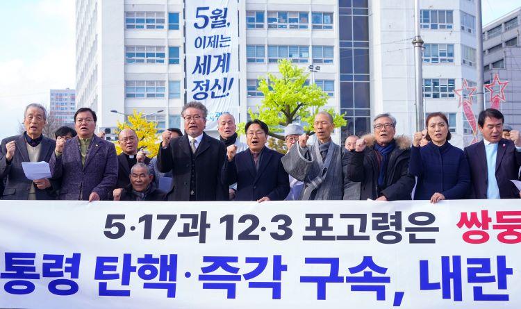 ±¤Áֽô À̾î 12¿ù 4ÀÏ 0½Ã11ºÐ °è¾ö ¼±Æ÷ 2½Ã°£µµ ä µÇÁö ¾ÊÀº ½Ã°¢¿¡ ½ÃÀå, ½ÃÀÇ¿ø, ½Ã¹Î»çȸ´Üü, 5¡¤18´Üü, Çаè, Á¾±³°è µî ±¤ÁÖÁö¿ª °¢°è ´ëÇ¥µéÀÌ Âü¿©ÇÑ ¡®Çå¹ý¼öÈ£ ºñ»ó°è¾ö ¹«È¿¼±¾ð ¿¬¼®È¸ÀÇ¡¯¸¦ ±ä±ÞÇÏ°Ô ¸¶·ÃÇß´Ù. ¿¬¼®È¸ÀÇ¿¡¼´Â ¹ÝÇå¹ýÀû °è¾öÀº ¹«È¿ÀÓÀ» ¼±¾ðÇϰí, ±º¡¤°æ¿¡´Â ½Ã¹Î º¸È£¸¦, °øÁ÷Àڵ鿡°Ô´Â ½Ã¹ÎÀÇ ÀÏ»ó ¾ÈÁ¤¿¡ ÃÖ¼±À» ´ÙÇÒ °ÍÀ» ±Ç°íÇϰí, ¹ÎÁÖÁÖÀÇ ¼öÈ£¸¦ °áÀÇÇß´Ù.