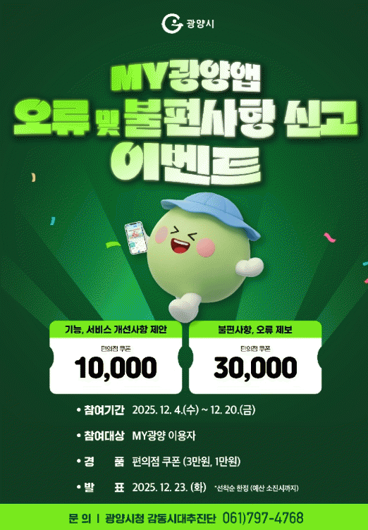 ½Ã °ü°èÀÚ´Â ¡°À̹ø À̺¥Æ®¸¦ ÅëÇØ Á¢¼öµÈ ¿À·ù´Â ½Å¼ÓÈ÷ °³¼±Çϰí, ºÒÆí»çÇ×Àº Áö¼ÓÀûÀÎ ¾÷µ¥ÀÌÆ®¸¦ ÅëÇØ º¸¿ÏÇØ ¡®MY±¤¾ç¡¯À» ´õ¿í Æí¸®ÇÑ »ç¿ëÀÚ Á᫐ ¼ºñ½º·Î ¹ßÀü½ÃÄÑ ³ª°¡°Ú´Ù¡±¸ç ¡°½Ã¹Î ¿©·¯ºÐÀÇ ¸¹Àº °ü½É°ú Âü¿©¸¦ ºÎʵ台´Ù¡±°í ¸»Çß´Ù.