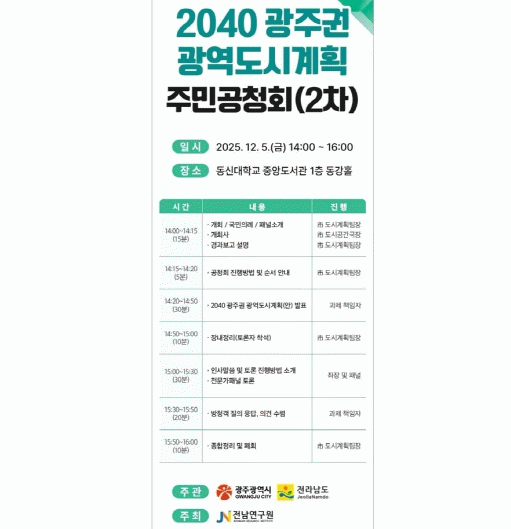 ¡®2040 ±¤ÁÖ±Ç ±¤¿ªµµ½Ã°èȹ¡¯Àº ±¤ÁÖ½Ã¿Í Àα٠Àü³² 5°³ ½Ã¡¤±º(³ªÁÖ¡¤´ã¾ç¡¤À强¡¤È¼ø¡¤ÇÔÆò)À» ÇϳªÀÇ »ýȰ±ÇÀ¸·Î º¸°í, ¼³²±Ç ´ëµµ½Ã±Ç¡¤±¤¿ª°æÁ¦±Ç¡¤±¤¿ª»ýȰ±ÇÀ» Á¶¼ºÇϱâ À§ÇÑ Àå±â °èȹÀÌ´Ù. ¡ã°æ°èÁö¿ª À°¼º ¡ãÇٽɻê¾÷ ȸ¶û ±¸Ãà ¡ã±¤¿ª±³Åë ¿¬°è È¿À²È µîÀÌ ÁÖ¿ä Àü·«À¸·Î ´ã±æ ¿¹Á¤ÀÌ´Ù.