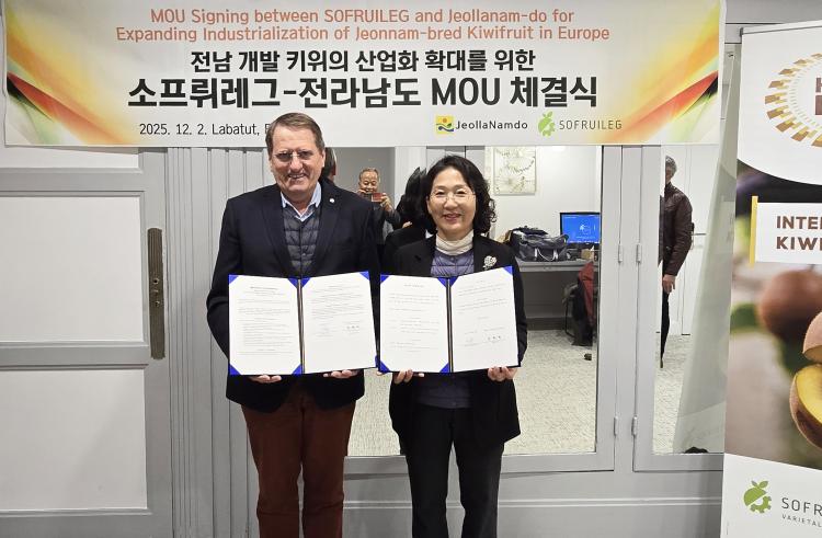 ±èÇà¶õ Àü³²µµ³ó¾÷±â¼ú¿øÀåÀº ¡°À̹ø Çù¾àÀ» °è±â·Î ±¹³» °³¹ß °ú¼ö ǰÁ¾ÀÇ ÇØ¿Ü »ê¾÷ȸ¦ À§ÇÑ ¾ÈÁ¤Àû ±â¹ÝÀÌ ¸¶·ÃµÆ´Ù¡±¸ç ¡°±¹»ê À°¼º ǰÁ¾ÀÌ ´Ü¼ø ¿¬±¸ ±³·ù¸¦ ³Ñ¾î À¯·´ »ê¾÷È·Î À̾îÁö´Â °ÍÀº ¸Å¿ì ÀÇ¹Ì ÀÖ´Â ¼º°ú¸ç, Àü³² ŰÀ§°¡ ±Û·Î¹ú ÇÁ¸®¹Ì¾ö °ú¼ö ½ÃÀå¿¡¼ °æÀï·ÂÀ» È®º¸ÇÒ ¼ö ÀÖµµ·Ï Áö¼ÓÀûÀ¸·Î Áö¿øÇϰڴ١±°í ¸»Çß´Ù.