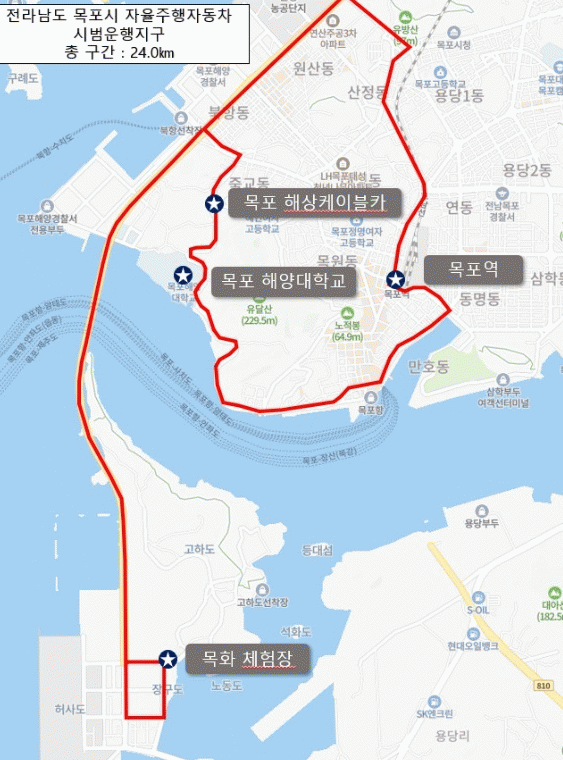 ÁöÁ¤ ±¸°£Àº ¸ñÆ÷¿ªÀ» ½ÃÀÛÀ¸·Î ÇØ¾ç´ëÇб³, ÇØ»óÄÉÀ̺íÄ«, ¸ñÈüÇèÀå, »êÁ¤³ó°ø´ÜÁö¸¦ °ÅÃÄ ´Ù½Ã ¸ñÆ÷¿ªÀ¸·Î À̾îÁö´Â ÃÑ 24km ¼øÈ¯ ³ë¼±ÀÌ´Ù. À¯´Þµ¿¡¤ºÏÇ×µ¿¡¤¿ø»êµ¿ µîÀ» Æ÷ÇÔÇØ ¸ñÆ÷ µµ½É°ú °ü±¤Áö, Ç׸¸ ¹èÈÄ »ê¾÷±ÇÀ» Æø³Ð°Ô ¿¬°áÇÑ´Ù.