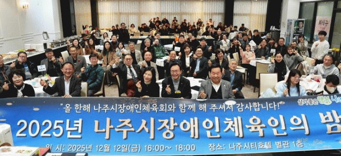 ³ªÁÖ½ÃÀå¾ÖÀÎüÀ°È¸´Â Áö³ 12ÀÏ ³ªÁÖ¾¾Æ¼È£ÅÚ º°°ü¿¡¼ ¡®2025 ³ªÁֽà Àå¾ÖÀÎüÀ°ÀÎÀÇ ¹ã¡¯À» °³ÃÖÇß´Ù°í 15ÀÏ ¹àÇû´Ù.