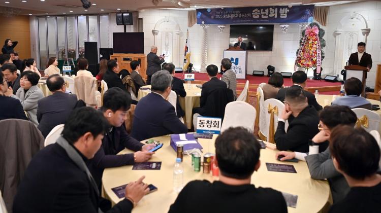 [ÅåÅå´º½º]È£³²´ëÇб³ Ãѵ¿Ã¢È¸(ȸÀå ±èâ½Â)´Â 12¿ù 12ÀÏ Àú³á CMB±¤ÁÖ¹æ¼Û 1Ãþ Àü½ÃȦ¿¡¼ ¡®2025 ¼Û³âÀÇ ¹ã¡¯ Çà»ç¸¦ ¼º´ëÇÏ°Ô °³ÃÖÇß´Ù. À̹ø Çà»ç´Â ÇÑ ÇØ¸¦ ¸¶¹«¸®ÇÏ¸ç µ¿¹® °£ÀÇ ¿ìÁ¤°ú ±³·ù¸¦ ´ÙÁö´Â ¶æ±íÀº ÀÚ¸®·Î, 150¿© ¸íÀÇ µ¿¹®°ú °ü°èÀÚµéÀÌ Âü¼®ÇØ ÀÚ¸®¸¦ ºû³Â´Ù.