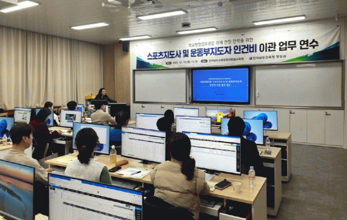 Àü¶ó³²µµ±³À°Ã»Àº 15ÀÏ Àü³²±³À°Ã»Ã¢ÀÇÀ¶ÇÕ±³À°¿ø¿¡¼ 22°³ ½Ã±º ±³À°Áö¿øÃ» üÀ°º¹ÁöÆÀ ÀΰǺñ ¾÷¹« ´ã´çÀÚ¸¦ ´ë»óÀ¸·Î ¡®½ºÆ÷Ã÷Áöµµ»ç ¹× ¿îµ¿ºÎÁöµµÀÚ ÀΰǺñ À̰ü ¾÷¹« ¿¬¼ö¡¯¸¦ ½Ç½ÃÇß´Ù.
