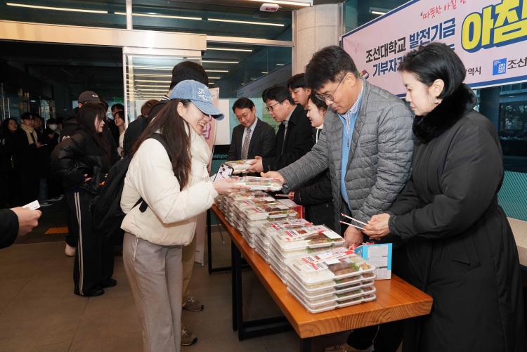 [ÅåÅå´º½º] Á¶¼±´ëÇб³(ÃÑÀå ±èÃἺ)°¡ ¡®Ãµ¿øÀÇ ¾ÆÄ§¹ä¡¯ Áö¿ø»ç¾÷ Ȱ¼ºÈ¸¦ À§ÇÑ ¹ßÀü±â±Ý ¸ð±Ý Ä·ÆäÀÎÀÇ ÀÏȯÀ¸·Î, ¸±·¹ÀÌ ±âºÎ¸¦ ÅëÇØ Çлýµé¿¡°Ô ¾ÆÄ§ µµ½Ã¶ôÀ» ¹«·á·Î Á¦°øÇÏ´Â ³ª´® Çà»ç¸¦ ÁøÇàÇß´Ù.