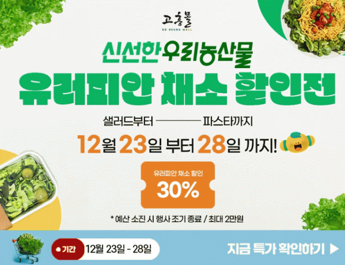 Çà»ç ±â°£ °íÈï¸ô¿¡¼´Â 30% ÇÒÀÎ ÄíÆùÀ» Á¦°øÇØ À¯·¯ÇÇ¾È Ã¤¼Ò¸¦ º¸´Ù ÇÕ¸®ÀûÀÎ °¡°ÝÀ¸·Î ±¸¸ÅÇÒ ¼ö ÀÖµµ·Ï Çß´Ù.