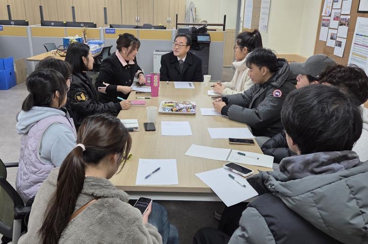 À̳¯ °£´ãȸ¿¡´Â ±è´ö¸ð ´ëÇпøÀå°ú ÁÖÀοµ À¯ÇлýÁö¿øÆÀÀå, À帮 Àü¹®À§¿ø, ±×¸®°í ´ëÇпø ¿Ü±¹ÀÎ À¯Çлý ´ëÇ¥ÀÚ 8¸íÀÌ Âü¼®ÇØ ÇÑ ÇØ µ¿¾ÈÀÇ À¯Çлý ´ëÇ¥ÀÚ È°µ¿°ú À¯Çлý »ýȰ¡¤Çо÷ Áö¿ø Àü¹Ý¿¡ ´ëÇØ ÀǰßÀ» ³ª´³´Ù. Âü¼®ÀÚµéÀº ÇÐ»ç ¿î¿µ°ú °ü·ÃÇÑ °ÇÀÇ»çÇ×À» °øÀ¯Çϰí, ½ÇÁ¦ À¯ÇлýµéÀÇ Çо÷ ¹× »ýȰ °úÁ¤¿¡¼ ³ªÅ¸³ °³¼± ÇÊ¿ä »çÇ׿¡ ´ëÇØ ½Éµµ ÀÖ´Â ³íÀǸ¦ ÁøÇàÇß´Ù.