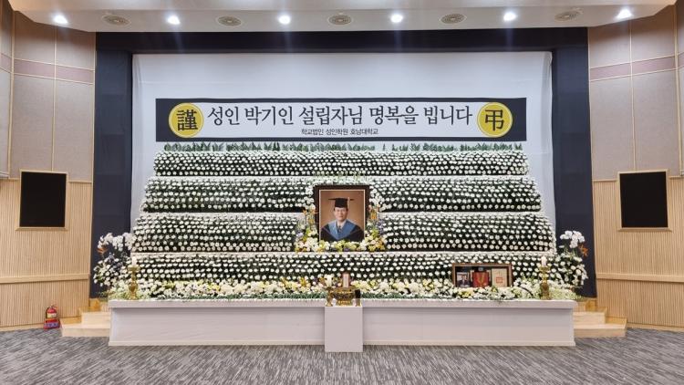 ¹Ú»ó°Ç È£³²´ëÇб³ ÀÌ»çÀåÀº À¯Á·À» ´ëÇ¥ÇØ¼ ¡°Ãß¿î ³¯¾¾¿¡µµ ¼³¸³ÀÚ´ÔÀÇ ºó¼Ò Áغñ¿Í Á¶¹®°´ ¸ÂÀÌ¿¡ Á¤¼ºÀ» ½ñ¾ÆÁØ ±³Á÷¿øµé¿¡°Ô ³Ê¹« °í¸¿´Ù¡±°í °¨»çÀÇ Àλ縦 ÀüÇÏ¸é¼ ¡°Çб³¼³¸³°ú ¹ßÀüÀ» À§ÇØ Çå½ÅÇϽм³¸³ÀÚ´ÔÀÇ ¸¶Áö¸· ±æÀ» ¹è¿õÇϱâ À§ÇØ Ã£¾ÆÁֽŠÁ¶¹®°´µé¿¡°Ô Á¶±ÝÀÇ ¼ÒȦÇÔµµ ¾øµµ·Ï ÇØ´Þ¶ó¡±°í ´çºÎÇß´Ù.