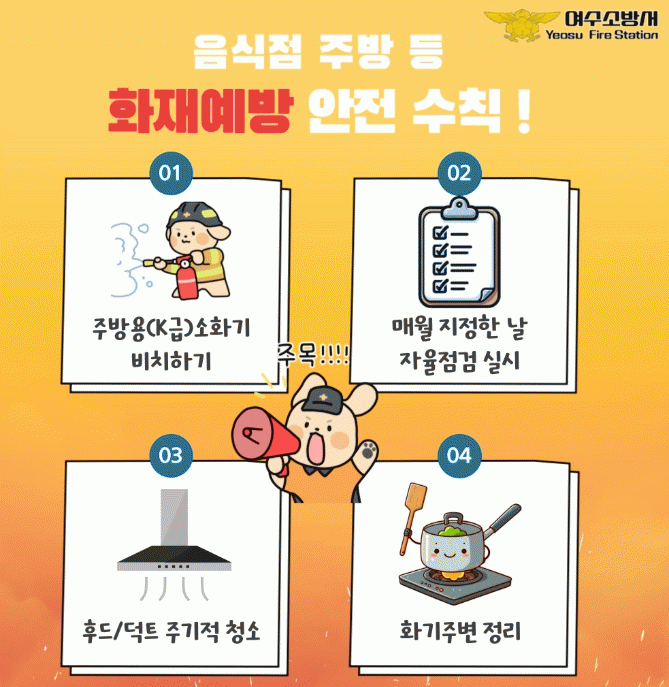 ÀÌ¿¡ ¿©¼ö¼Ò¹æ¼´Â À½½ÄÁ¡ ÁÖ¹æ ÈÀç ¿¹¹æÀ» À§ÇØ ´ÙÀ½°ú °°Àº ÇÙ½É ¾ÈÀü¼öÄ¢À» °Á¶Çß´Ù.