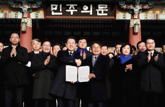 ÀÌ¿¡ µû¶ó ¾ç ½Ã¡¤µµ´Â À̹ø °øµ¿¼±¾ðÀ» ÅëÇØ ±¤ÁÖ¡¤Àü³² ÇàÁ¤ÅëÇÕÀ» ´õ ÀÌ»ó ¹Ì·çÁö ¾Ê°í Áï°¢ ÃßÁøÇϱâ·Î ÇÕÀÇÇß´Ù.