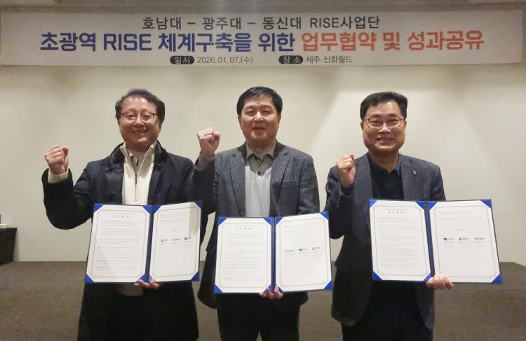È£³²´ëÇб³ Á¤Á¦Æò RISE»ç¾÷´ÜÀåÀº ¡°±¤ÁÖ¡¤Àü³² 3°³ ´ëÇÐÀÌ RISE»ç¾÷ ¼º°ú¸¦ °øÀ¯Çϰí Ãʱ¤¿ª ÇÁ·Î±×·¥À» °øµ¿À¸·Î ±âȹ¡¤¿î¿µÇÏ´Â °ÍÀº Áö¿ªÇõ½ÅÀ» °¡¼ÓÈÇÏ´Â Áß¿äÇÑ ÀüȯÁ¡¡±À̶ó¸ç, ¡°À̹ø Çù¾àÀ» °è±â·Î °¢ ´ëÇÐÀÇ ³ëÇÏ¿ì¿Í °Á¡À» Àû±Ø °øÀ¯, ½ÇÁúÀûÀÎ ¼º°ú·Î À̾îÁú ¼ö ÀÖµµ·Ï È£³²´ëÇб³°¡ Çù·ÂÀÇ Á᫐ ¿ªÇÒÀ» Ãæ½ÇÈ÷ ¼öÇàÇϰڴ١±°í ¹àÇû´Ù.