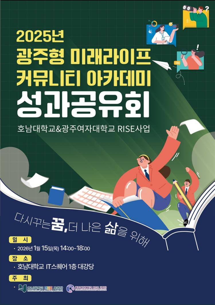 À̹ø ¼º°ú°øÀ¯È¸´Â ±¤ÁÖ¿©ÀÚ´ëÇб³¿Í È£³²´ëÇб³°¡ °øµ¿À¸·Î ÃßÁøÇÑ RISE ´ÜÀ§°úÁ¦ ¡®±¤ÁÖÇü ¹Ì·¡¶óÀÌÇÁ Ä¿¹Â´ÏƼ ¾ÆÄ«µ¥¹Ì¡¯ÀÇ ¼º°ú¸¦ Áö¿ª»çȸ¿Í °øÀ¯ÇÏ´Â ÀÚ¸®·Î, ´ëÇаú Áö¿ªÀÌ ÇÔ²²ÇÏ´Â Æò»ýÇнÀ ¸ðµ¨À» Á¦½ÃÇÒ °ÍÀ¸·Î ±â´ëµÈ´Ù.