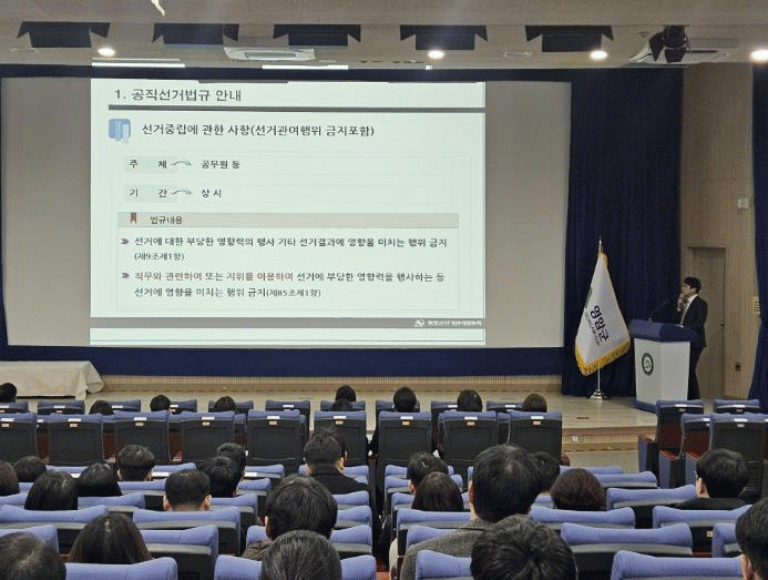 ¹Ú¿µÇÏ ¿µ¾Ï±º ÀÚÄ¡ÇàÁ¤°úÀåÀº "°øÁ÷ÀÚÀÇ Á¤Ä¡Àû Á߸³Àº °øÁ¤ÇÑ ¼±°ÅÀÇ ÇÙ½ÉÀÌ´Ù. °ø¹«¿øÀÇ ¼±°Å °ü¿© ÇàÀ§¿¡ ´ëÇÑ °æ°¢½ÉÀ» ³ôÀÌ°í ±ú²ýÇÑ Áö¹æ¼±°Å°¡ ÁøÇàµÇµµ·Ï Áö¿øÇϰڴ١°°í ¸»Çß´Ù.