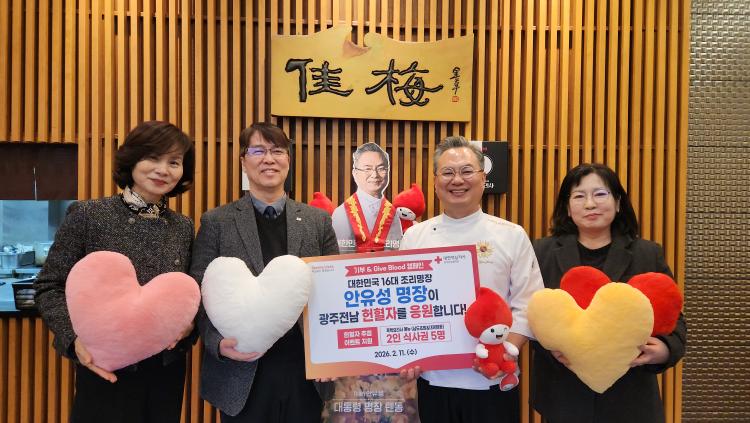±¤ÁÖÀü³²Ç÷¾×¿ø ¹ÚÁø¼º ¿øÀåÀº ¡°Áö¿ª Ç÷¾×¼ö±Þ ¾ÈÁ¤È¸¦ À§ÇØ ½Ä»ç±ÇÀ» ±âºÎÇØ ÁֽоÈÀ¯¼º ¸íÀå¿¡°Ô Áø½ÉÀ¸·Î °¨»çÀÇ ¸»¾¸À» ÀüÇÑ´Ù¡±¸ç ¡°¾ÕÀ¸·Îµµ Áö¿ª ³» ±â¾÷, ½Ä´ç, Ä«Æäµé°ú »çȸ°øÇåÇù¾à µî È®´ë¸¦ ÅëÇØ º¸´Ù ´Ù¾çÇÑ ÇåÇ÷ÀÚ ÇÁ·Î¸ð¼ÇÀ» ½Ç½ÃÇÏ¿© ±¤ÁÖÀü³² ½Ã¹Îµé¿¡ ÇåÇ÷ÀÌ ´õ¿í °¡±õ°í Áñ°Ì°Ô ´Ù°¡°¥ ¼ö ÀÖµµ·Ï ÃÖ¼±À» ´ÙÇϰڴ١±¶ó°í ¸»Çß´Ù.