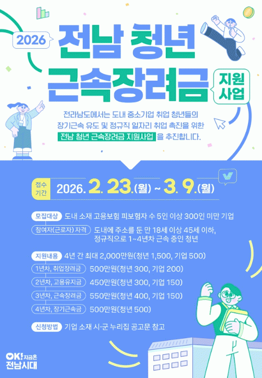 û³â ±Ù¼ÓÀå·Á±Ý Áö¿ø»ç¾÷Àº Àü³²µµ°¡ 2016³âºÎÅÍ ÃßÁøÇÑ ´ëÇ¥ û³âÀÏÀÚ¸® »ç¾÷ÀÌ´Ù.