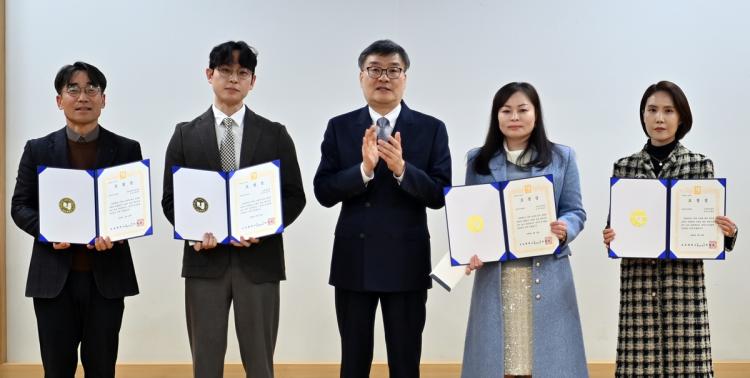À̳¯ ±³¼ö¿¬¼ö 1ºÎ¿¡¼´Â ¡®2025Çг⵵ °ÀÇ¿ì¼ö±³¿ø¡¯À¸·Î ¼±Á¤µÈ »çȸ°æ¿µ´ëÇÐ °æÂûÇàÁ¤Çаú ÀÌÈÆÀç, °æ¿µÇкΠ¾çµ¿¹Î¡¤ÀåÁØÈ£, °ü±¤°æ¿µÇаú Á¤Àº¼º, È£ÅÚÄÁº¥¼ÇÇаú ÀÌÈñ½Â, º¸°Ç°úÇдëÇÐ °£È£Çаú ±èÀ±¼ö¡¤±èÀº¾Æ¡¤±è ÀºÁ¤¡¤¹®Á¤Àº¡¤¹é¼Ò¿µ¡¤ÀÌ¿¬ÈÄ¡¤ÀÌÀº¿µ¡¤ÃÖÀ±ÇÏ, ÀÓ»óº´¸®Çаú ÀåÀ¯Áö, Ä¡±â°øÇаú ¹®Áظð, AIÀ¶ÇÕ´ëÇÐ °ÇÃàÇкΠ±èÀÌÁ¦, Àü±â°øÇаú °íÀçÇÏ, ¹Ì·¡¸ðºô¸®Æ¼Çаú °¹Ì¿µ, ¹®È¿¹¼úüÀ°´ëÇÐ ¹Ìµð¾î¿µ»ó°ø¿¬Çаú °íÈ£ºó, ½ºÆ÷Ã÷·¹ÀúÇаú Á¤³²ÁÖ ±³¼ö µî 20¸í¿¡ ´ëÇØ ÃÑÀå ǥâÀåÀÌ Àü¼öµÆ´Ù.
