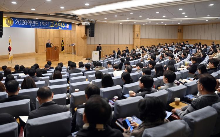 [ÅåÅå´º½º]È£³²´ëÇб³(ÃÑÀå ¹Ú»óö)´Â 2¿ù 23ÀÏ ¿ÀÈÄ ±³³» »óÇϰü °´ç¿¡¼ ÀüÀÓ±³¿ø 240¿©¸íÀÌ Âü¼®ÇÑ °¡¿îµ¥ ¡®2026Çг⵵ 1Çб⠱³¼ö¿¬¼ö¡¯¸¦ ½Ç½ÃÇß´Ù.