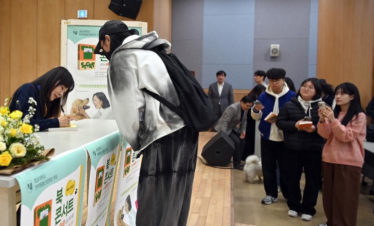 ƯÈ÷ ºÏÄܼƮ¿¡¼´Â ¹®Á¤Èñ ¹è¿ì°¡ Á÷Á¢ Ã¥ ¼Ó Àλó ±íÀº ±¸ÀýÀ» ³¶µ¶Çϰí, Çлý°ú Âü¿©Àڵ鵵 °¢ÀÚ ¸¶À½¿¡ ³²Àº ¹®ÀåÀ» ÇÔ²² Àд ½Ã°£À» °¡Áö¸ç ¹®Çаú ¹Ý·Áµ¿¹° À̾߱Ⱑ ¾î¿ì·¯Áø °ø°¨ÀÇ ÀåÀÌ ÆîÃÄÁ³´Ù.