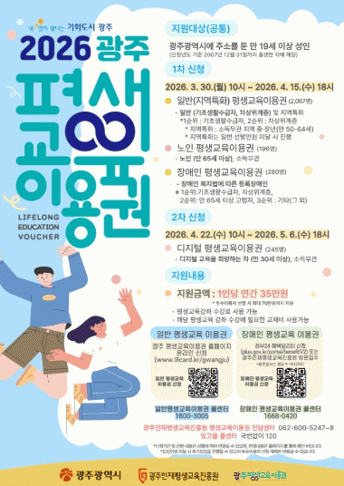 ÀϹݡ¤µðÁöÅС¤³ëÀÎ ½ÅûÀº ¡®Æò»ý±³À°ÀÌ¿ë±Ç¡¯ ´©¸®Áý¿¡¼ ½ÅûÇÒ ¼ö ÀÖÀ¸¸ç, Àå¾ÖÀÎÀÌ¿ë±ÇÀº ¡®Á¤ºÎ24¡¯ ´©¸®ÁýÀ» ÅëÇØ ¿Â¶óÀÎÀ¸·Î Á¢¼öÇÏ¸é µÈ´Ù. Àå¾ÖÀÎÀÌ¿ë±ÇÀº ½ÅûÀÚ ÆíÀǸ¦ °í·ÁÇØ (Àç)±¤ÁÖÀÎÀçÆò»ý±³À°ÁøÈï¿øÀ» ¹æ¹®ÇØ Á¢¼öÇÏ´Â °Íµµ °¡´ÉÇÏ´Ù. °ü·Ã »çÇ×Àº Æò»ý±³À°ÀÌ¿ë±Ç ´©¸®ÁýÀ» Âü°íÇϰųª ±¤ÁÖ Æò»ý±³À°ÀÌ¿ë±Ç »ó´ã¼¾ÅÍ·Î ¹®ÀÇÇÏ¸é µÈ´Ù.