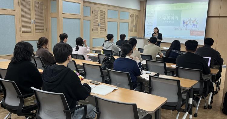 ¡®Çаúº° Á÷¹«µ¿¾Æ¸®¡¯´Â µ¿ÀÏ Á÷¹«¿¡ °ü½ÉÀ» °¡Áø ÀçÇлýµéÀÌ ¸ð¿© Á÷¹« °ü·Ã Á¤º¸¸¦ °øÀ¯Çϰí, Á÷¹« ÀÌÇØµµ¸¦ ³ôÀ̸ç Áø·Î¸¦ ±¸Ã¼ÈÇÒ ¼ö ÀÖµµ·Ï Áö¿øÇÏ´Â ÇÁ·Î±×·¥ÀÌ´Ù. ƯÈ÷ 1ÇгâºÎÅÍ 4Çгâ±îÁö ¼±ÈĹ谡 ÇÔ²² Âü¿©ÇÏ´Â ±¸Á¶·Î ¿î¿µµÇ¾î ÀÚ¿¬½º·¯¿î ¸àÅ丵°ú Çù¾÷À» ÅëÇÑ Ãë¾÷¿ª·® °È°¡ ±â´ëµÈ´Ù.