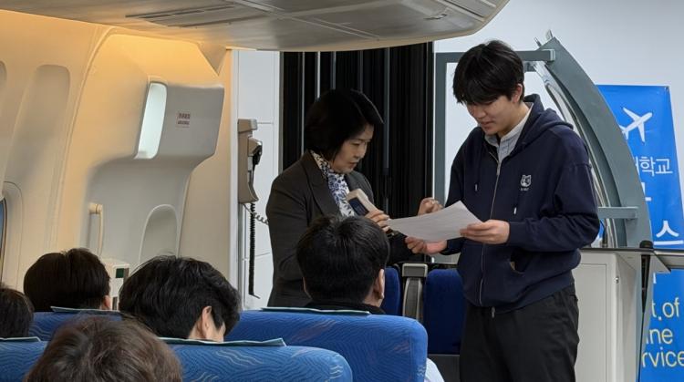 ¿À´Ã Çà»ç¿¡ Âü¿©ÇÑ ±¤ÁÖ µ¿¼º°íµîÇб³ ÇлýµéÀº Ç×°ø ¾ÈÀüÀ» ÁÖÁ¦·Î ¡®½Â¹«¿ø ¾÷¹«¡¯¿Í ¡®Ç×°øÀÇ ¿ª»ç¡¯¿¡ ´ëÇÑ ±³À°¿¡ Âü¿©Çß´Ù. ƯÈ÷, Åͺ深½º »óȲ¿¡¼ÀÇ ±â³» ¹æ¼Û ÀýÂ÷¿Í ´ëÀÀ ¹æ¹ýÀ» ¹è¿ì¸ç ½Ç¹«ÀûÀÎ Áö½ÄÀ» ÀÍÇû°í, VR üÇèÀ» ÅëÇØ ½ÇÁ¦ »óȲÀ» °£Á¢ÀûÀ¸·Î °æÇèÇß´Ù.