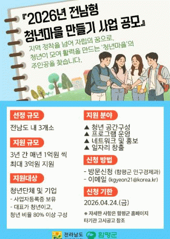 ÇÔÆò±ºÀº ¡°Ã»³â ÁÖµµÇü Á¤Ã¥ »ç¾÷ÀÎ ¡®Àü³²Çü û³â¸¶À» »ç¾÷¡¯¿¡ µµÀüÇÒ Ã»³â´Üü¸¦ ¿À´Â 24ÀϱîÁö ¸ðÁýÇÑ´Ù¡±°í 9ÀÏ ¹àÇû´Ù.