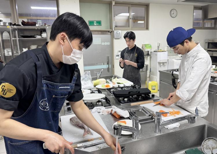±è¹Ù¿ï Çлý(3Çгâ)Àº ¡°±âÁ¸ÀÇ ÀϽıâ´É»ç ¼öÁØÀ» ³Ñ¾î¼± »ê¾÷±â»ç °úÁ¤ÀÇ Ã¹ ½Ç½À¿¡¼ ÀÏ½Ä Á¶¸®ÀÇ ±âº»ÀÌÀÚ Á¤¼öÀÎ µ¹·Á±ð±â¸¦ ü°èÀûÀ¸·Î ¹è¿ì¸ç ±â¼úÀû ¼ºÃë¿¡ ´ëÇÑ »ÑµíÇÔÀ» ´À²¼´Ù¡±°í ¸»Çß´Ù. ¶Ç ±è¹Î¼º Çлý(3Çгâ)Àº ¡°Æò¼Ò Á¢Çϱ⠾î·Á¿î ½Å¼±ÇÑ µµ¹Ì¸¦ Ȱ¿ëÇØ Á÷Á¢ Àü󸮸¦ Çϰí ȸ¸¦ ¶ß´Â °úÁ¤À» °æÇèÇÔÀ¸·Î½á À̷и¸À¸·Î Á¢ÇÏ´ø ±â¼úÀ» ¼Õ¿¡ ÀÍÈú ¼ö ÀÖ´Â À¯ÀÍÇÑ ½Ã°£À̾ú´Ù¡±°í ³ôÀº ¸¸Á·°¨À» Ç¥Çß´Ù.