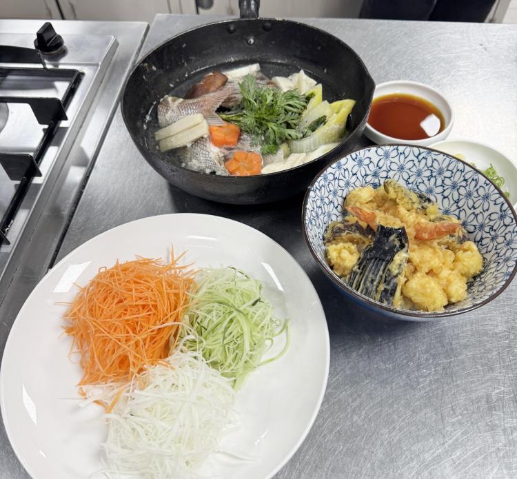 ¶ÇÇÑ µµ¹Ì³¿ºñ(鯛ªÎΧڪ), »ï»ö°», Æ¢±èµ¤¹ä(ô¸丼)À» Â÷·Ê·Î ½Ã¿¬ÇÏ¸ç ½ÄÀç·áÀÇ Æ¯¼ºÀ» »ì¸®´Â ÀÏ½Ä Æ¯À¯ÀÇ ¼¶¼¼ÇÑ Á¶¸® ±â¹ý¿¡ ´ëÇØ ¾Æ³¦¾øÀÌ Àü¼öÇß´Ù. ÇлýµéÀº °í³µµÀÇ ±â¼ú·ÂÀ» ¿ä±¸ÇÏ´Â °úÁ¦µéÀ» Á¢ÇÏ¸ç ½Ç½À¿¡ Âü¿©Çß´Ù.