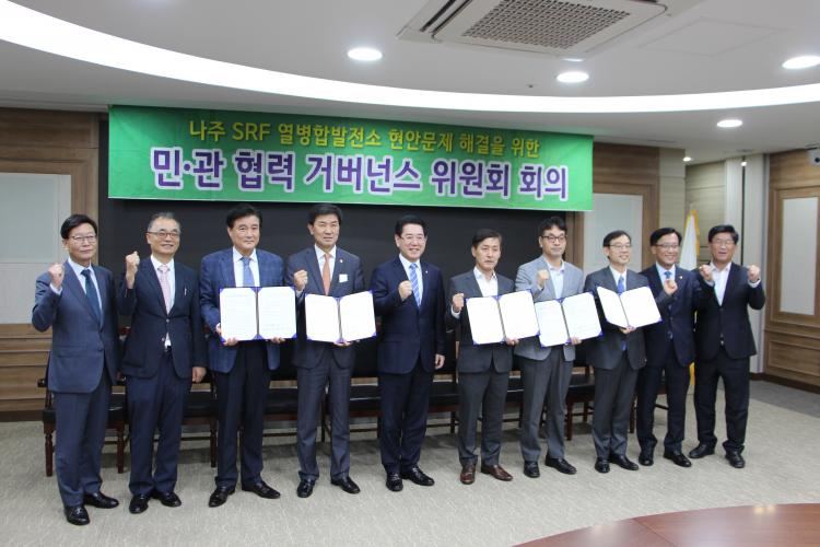 »ê¾÷Åë»óÀÚ¿øºÎ, Àü¶ó³²µµ, ³ªÁÖ½Ã, Çѱ¹Áö¿ª³¹æ°ø»ç, ³ªÁÖ¿º´ÇÕ¹ßÀü¼Ò ¾²·¹±â¿¬·á »ç¿ë¹Ý´ë ¹ü½Ã¹Î´ëÃ¥À§¿øÈ¸°¡ Âü¿©ÇÏ´Â ¹Î¡¤°ü Çù·Â °Å¹ö³Í½º´Â 26ÀÏ ¿ÀÈÄ 2½Ã Àü³²µµÃ» ¼ÀçÇʽǿ¡¼ ¿¸° Á¦14Â÷ °Å¹ö³Í½º ȸÀǸ¦ ÅëÇØ ¡®³ªÁÖ ¿º´ÇÕ¹ßÀü¼Ò Çö¾È ¹®Á¦ ÇØ°áÀ» À§ÇÑ ±âº»ÇÕÀǼ¡¯¸¦ ¹ßÇ¥Çϰí, ÇÕÀǼ¿¡ ÃÖÁ¾ ¼¸íÇß´Ù.