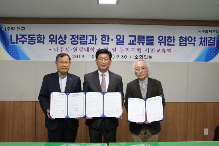 [ÅåÅå´º½º] Àü¶ó³²µµ ³ªÁÖ½Ã(½ÃÀå °ÀαÔ)´Â 30ÀÏ ¿ÀÀü 9½Ã 30ºÐ ½Ãû ¼ÒȸÀǽǿ¡¼ ¿ø±¤´ëÇб³(ÃÑÀå ¹Ú¸Í¼ö), ÇÑ¡¤ÀÏ µ¿ÇбâÇà ½Ã¹Î±³·ùȸ(´ëÇ¥ À̳ë¿ì¿¡ Ä«Ã÷¿À)¿Í ¡®³ªÁÖ µ¿ÇÐ À§»óÁ¤¸³°ú ÇÑ¡¤ÀÏ °ü°è °³¼±À» À§ÇÑ ¾÷¹«Çù¾à¡¯À» ü°áÇß´Ù°í ¹àÇû´Ù.