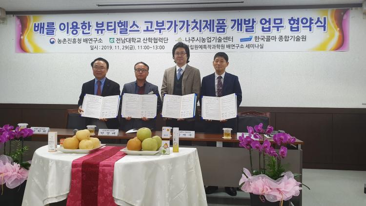 ³ªÁֽà ³ó¾÷±â¼ú¼¾ÅÍ´Â 29ÀÏ ³óÃÌÁøÈïû ±¹¸³¿ø¿¹Æ¯ÀÛ°úÇпø ¹è¿¬±¸¼Ò(¼ÒÀå °»ï¼®), Àü³²´ëÇб³ »êÇÐÇù·Â´Ü(´ÜÀå ±èÀç±¹), ¢ßÇѱ¹Äݸ¶(¿øÀå °ÇÐÈñ)¿Í ¡®³ªÁÖ ¹è Ȱ¿ë Á¦Ç° °³¹ßÀ» À§ÇÑ ¾÷¹«Çù·ÂÇù¾à(MOU)¡¯À» ü°áÇß´Ù°í ¹àÇû´Ù.