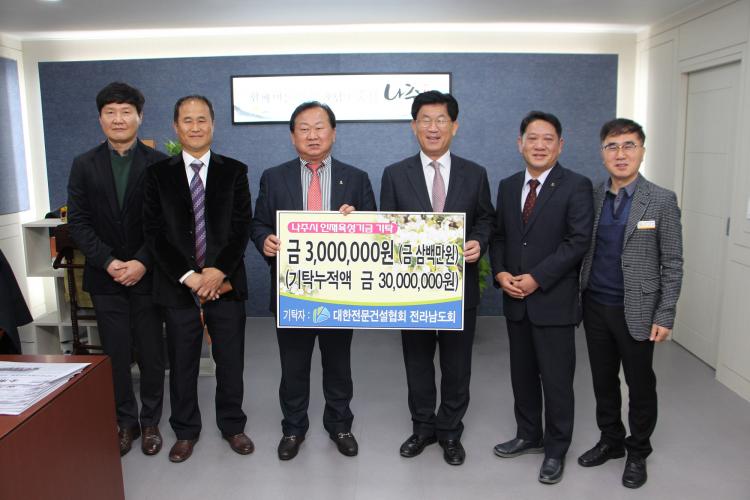 [ÅåÅå´º½º]³ªÁÖ½Ã(½ÃÀå °ÀαÔ)´Â Áö³ 16ÀÏ ´ëÇÑÀü¹®°Ç¼³Çùȸ Àü¶ó³²µµÈ¸(´ëÇ¥ ¿ÀÁ¾¼ø)¿Í ³ªÁֽà Àü¹®°Ç¼³ÇùÀÇȸ(´ëÇ¥ ¹Ú°è¸í)·ÎºÎÅÍ Áö¿ª ÀÎÀçÀ°¼ºÀ» À§ÇÑ ±³À°ÁøÈïÀç´Ü ÀåÇбâ±Ý 3¹é¸¸¿ø°ú 2¹é¸¸¿øÀ» °¢°¢ ±âŹ¹Þ¾Ò´Ù°í ¹àÇû´Ù.