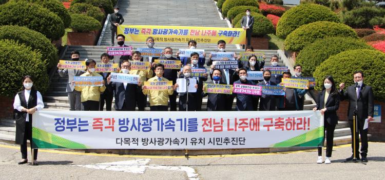 ´Ù¸ñÀû ¹æ»ç±¤°¡¼Ó±â À¯Ä¡ ½Ã¹Î ÃßÁø´ÜÀº 500¸¸ Àü³², ÀüºÏ, ±¤ÁÖ ½Ã¡¤µµ¹ÎÀÇ ´ÜÇÕµÈ ÈûÀ» ¹ÙÅÁÀ¸·Î È£³²±Ç ±ÕÇü¹ßÀüÀ» À§ÇÑ ¹æ»ç±¤°¡¼Ó±â ³ªÁÖ ±¸ÃàÀÇ ´çÀ§¼ºÀ» ºÎ°¢½Ã۰í Àü ±¹¹ÎÀû À¯Ä¡ ºÐÀ§±â È®»ê°ú °ø°¨´ë Çü¼º¿¡ ÁÖ·ÂÇϰí ÀÖ´Ù.