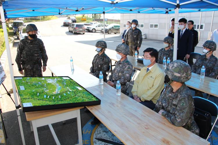ƯÈ÷ ÀÛÀü ÇöÀå Áöµµ¸¦ À§ÇØ ¹æ¹®ÇÑ È²À뱂 À°±º Á¦2ÀÛÀü»ç·É°ü, ¼Ò¿µ¹Î Á¦31»ç´ÜÀå°ú ÇÔ²² ÀÛÀü ÅõÀÔ Àη ¹× Àåºñ, »ç¾÷ ¿¹»ê, ±â°£ µî ±¸Ã¼Àû ÇöȲÀ» ûÃëÇϰí ÇöÀåÀ» ½ÃÂû, À°±º °ü°èÀÚµéÀÇ ³ë°í¸¦ °Ý·ÁÇß´Ù.