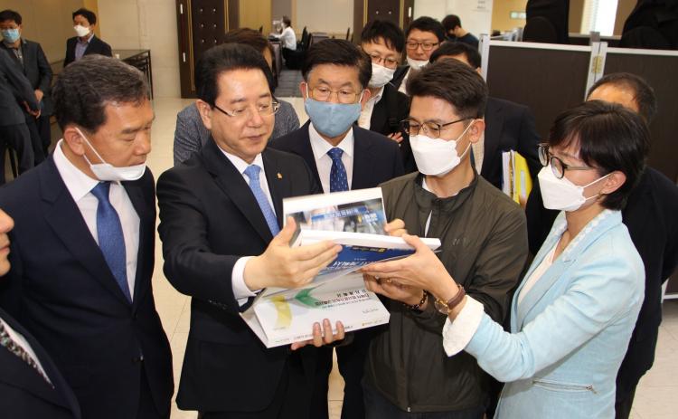 [ÅåÅå´º½º]°ÀÎ±Ô ³ªÁÖ½ÃÀåÀº 6ÀÏ ´Ù¸ñÀû ¹æ»ç±¤°¡¼Ó±â ±¸Ãà»ç¾÷ ºÎÁö¼±Á¤Æò°¡À§¿øÈ¸ ¹ßÇ¥Æò°¡°¡ ¿¸®°í ÀÖ´Â ´ëÀü ÀÎÅÍ½ÃÆ¼È£ÅÚÀ» ¹æ¹®, ¹æ»ç±¤°¡¼Ó±â È£³²±Ç(³ªÁÖ) À¯Ä¡¸¦ À§ÇÑ ¸·¹ÙÁö ÃÑ·ÂÀ» ±â¿ïÀÌ°í ³ª¼¹´Ù.