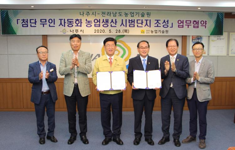 ³ªÁÖ½Ã(½ÃÀå °ÀαÔ)´Â ÃÖ±Ù ½Ãû ÀÌȽǿ¡¼ Àü¶ó³²µµ³ó¾÷±â¼ú¿ø°ú ¡®Ã·´Ü ¹«ÀΡ¤ÀÚµ¿È ³ó¾÷»ý»ê ½Ã¹ü´ÜÁö¡¯ Á¶¼º ÃßÁøÀ» À§ÇÑ ¾÷¹«Çù¾àÀ» ü°áÇß´Ù°í 2ÀÏ ¹àÇû´Ù.