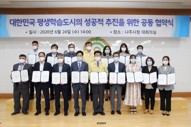 Àü¶ó³²µµ ³ªÁÖ½Ã(½ÃÀå °ÀαÔ)´Â ÃÖ±Ù ½Ãû ´ëȸÀǽǿ¡¼ ³ªÁÖ±³À°Áö¿øÃ» µî 18°³ Æò»ý±³À° °ü°è±â°ü°ú ¼º°øÀûÀÎ Æò»ýÇнÀµµ½Ã ÃßÁøÀ» À§ÇÑ ¾÷¹«Çù¾àÀ» ü°áÇß´Ù°í 26ÀÏ ¹àÇû´Ù.