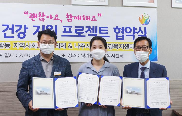 [ÅåÅå´º½º]³ªÁֽà ºû°¡¶÷µ¿ Áö¿ª»çȸº¸ÀåÇùÀÇü°¡ Äڷγª19 Àå±âÈ·Î ÁöÄ£ ÁÖ¹ÎÀÇ Á¤½Å°Ç° ÁõÁøÀ» À§ÇØ ³ªÁÖ½ÃÁ¤½Å°Ç°º¹Áö¼¾ÅÍ¿Í ¼ÕÀ» ¸ÂÀâ¾Ò´Ù.
