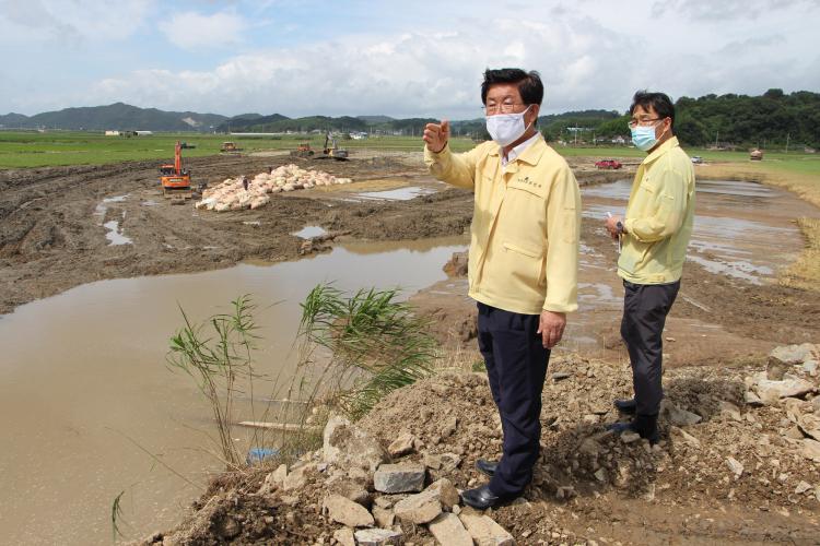 [ÅåÅå´º½º] °ÀÎ±Ô ³ªÁÖ½ÃÀåÀº 12ÀÏ ´Ù½Ã¸é ¹®Æòõ Çѳ»±³ Àα٠Á¦¹æ º¹±¸ ÇöÀåÀ» ¹æ¹®ÇØ °ø»ç ÃßÁø »óȲÀ» Á¡°ËÇÏ°í °ü°èÀÚµéÀÇ ³ë°í¸¦ °Ý·ÁÇß´Ù.
