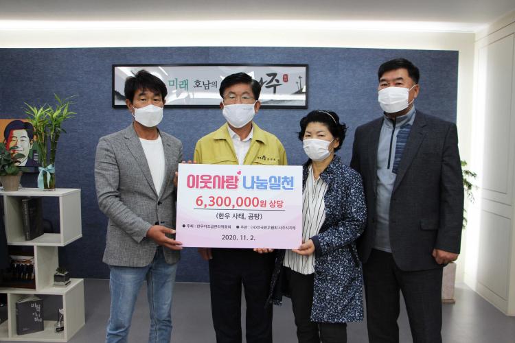 °ÀÎ±Ô ³ªÁÖ½ÃÀåÀº ¡°ÇÑ¿ìÇùȸ ȸ¿øµéÀÇ µû¶æÇÑ Á¤¼º¿¡ °¨»çµå¸°´Ù¡±¸ç ¡°ÈÄ¿ø ¹°Ç°ÀÌ ¾î·Á¿î ÀÌ¿ôÀ» À§ÇØ ÀÇ¹Ì ÀÖ°Ô »ç¿ëµÉ ¼ö ÀÖµµ·Ï Çϰڴ١±°í ¸»Çß´Ù.