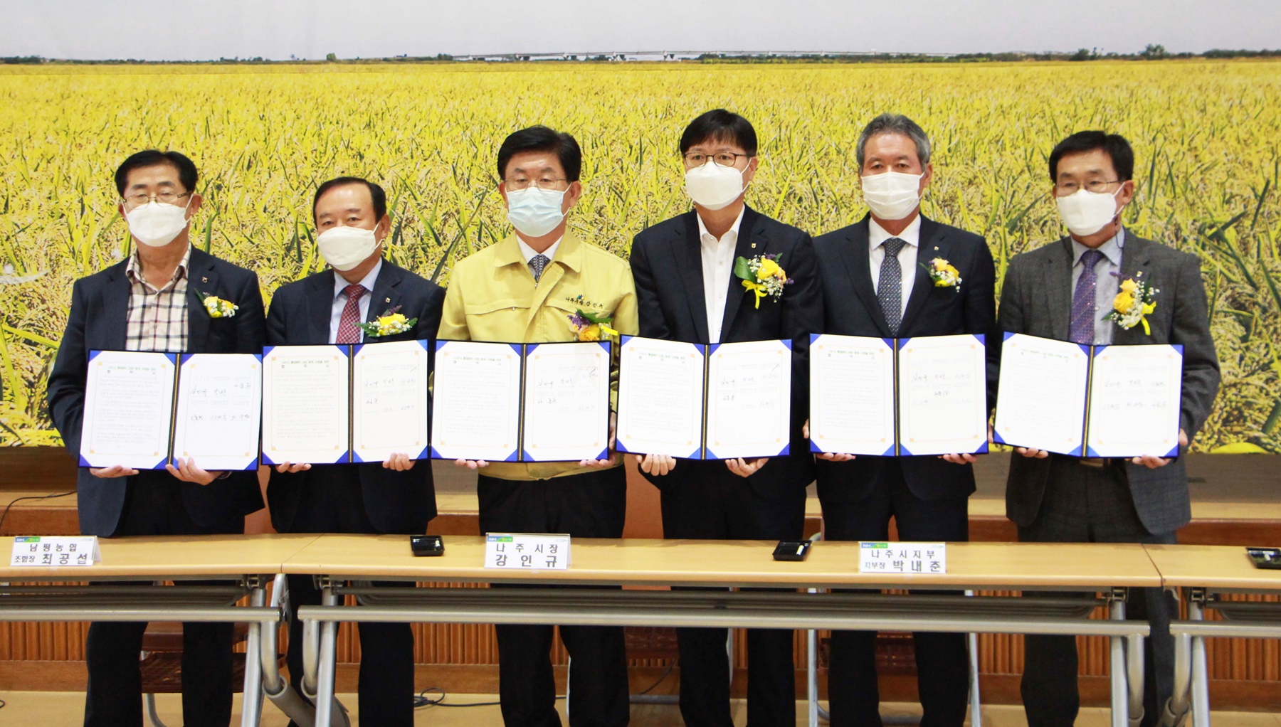 ³ªÁÖ½Ã(½ÃÀå °ÀαÔ)´Â Áö³ 17ÀÏ ³ó¾÷±â¼ú¼¾ÅÍ ´Ù¸ñÀû°´ç¿¡¼ NH³óÇù³ªÁÖ½ÃÁöºÎ, ³²Æò, ¸¶ÇÑ, µ¿°, ´Ù½Ã 4°³ ³óÇù°ú ÅëÇÕRPC »ç¾÷ü°è ±¸ÃàÀ» À§ÇÑ ¡®³ªÁֽóóÇù½ÒÁ¶ÇÕ °øµ¿»ç¾÷¹ýÀΠ⸳ÃÑȸ ¹× ¾÷¹«Çù¾à¡¯À» °¡Á³´Ù°í 18ÀÏ ¹àÇû´Ù.