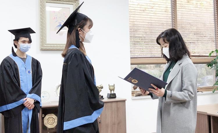 Á¹¾÷ ¿¹Á¤ ¿Ü±¹ÀÎ À¯ÇлýÀº Áß±¹ 158¸í, º£Æ®³² 19¸í, ·¯½Ã¾Æ 1¸í, ¸ù°ñ 1¸í µî ÃÑ 179¸íÀ¸·Î, Äڷγª19 È®»êÀ» ¹æÁöÇϱâ À§ÇØ ÀϺΠ¼ö»óÀÚ¸¸ Âü¿©ÇÑ °¡¿îµ¥ Çл纸°í, ±¹Á¦±³·ùóÀå Ä¡»ç, ½Ã»ó½Ä ¹× ÀçÇлý ¼Û»ç, Á¹¾÷»ý ´ëÇ¥ ´ä»çÀÇ ¼ø¼·Î ÁøÇàÇß´Ù.