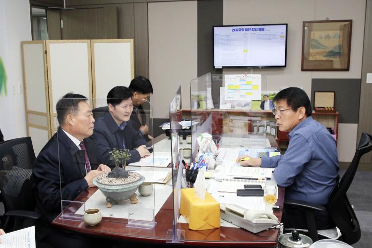 ±×µ¿¾È ±º¿¡¼´Â ±è»ê ±º¼ö°¡ Á÷Á¢ Áß¾ÓºÎó¸¦ ¼öÂ÷·Ê ¹æ¹®ÇÏ¿© ±¹ºñ Áö¿øÀ» °ÇÀÇÇÏ¿´°í, ÁÖ¿ä Çö¾È»ç¾÷ÀÌ ±¹È¸ ½ÉÀǰúÁ¤¿¡¼ ´©¶ôµÇÁö ¾Êµµ·Ï Áö¿ª ±¹È¸ÀÇ¿øÀ» ¸¸³ª »ç¾÷ÀÇ Å¸´ç¼ºÀ» ¼³¸íÇÏ¿´´Ù.