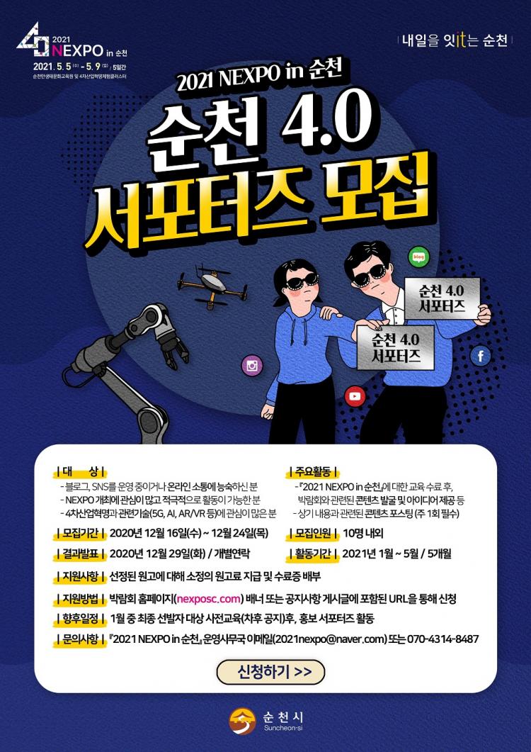 [ÅåÅå´º½º]¼øÃµ½Ã(½ÃÀå Çã¼®)°¡ 5G¡¤AI µî ÷´Ü±â¼ú Áß½ÉÀÇ ¹Ì·¡ »îÀ» ÇÑ¹ß ¾Õ¼ °æÇèÇÒ ¼ö ÀÖ´Â 4Â÷»ê¾÷¹Ú¶÷ȸ ¡®2021 NEXPO in ¼øÃµ¡¯ÀÇ ¼Æ÷ÅÍÁ ¸ðÁýÇÑ´Ù.